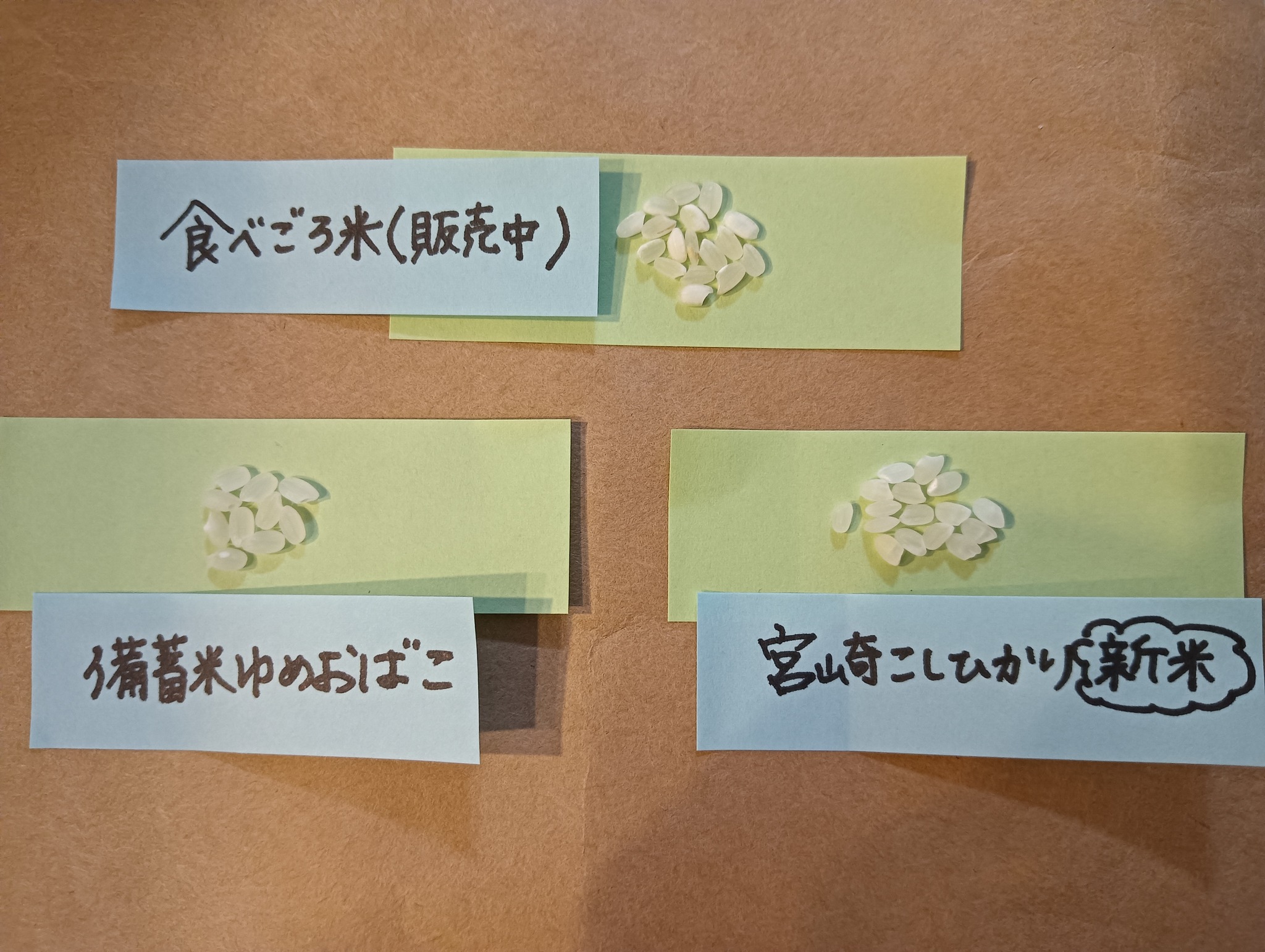 では、備蓄米「ゆめおばこ」、新米「宮崎こしひかり」と比べてみましょう。